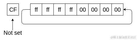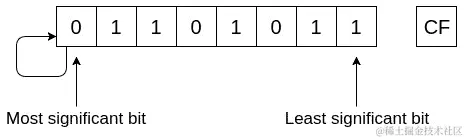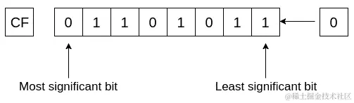 在 SAL 中,我们在最低有效位侧推送0,并且来自最高有效位侧的额外位可能会影响CF,如果它是1:
