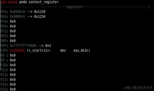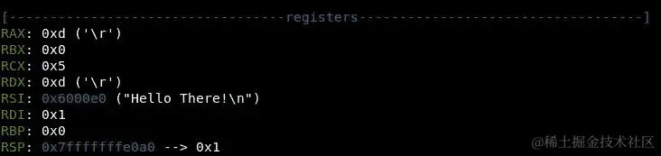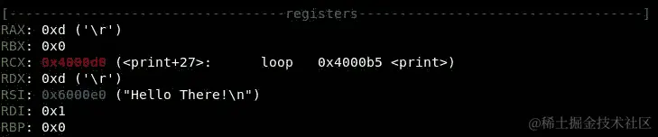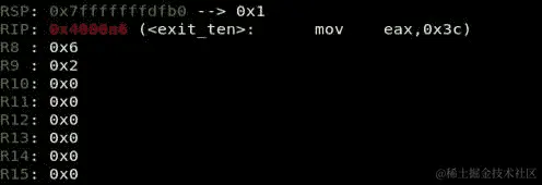然后,我们再次执行ret指令,这将从堆栈中弹出下一条指令,并将其放入RIP寄存器中,相当于pop rip: