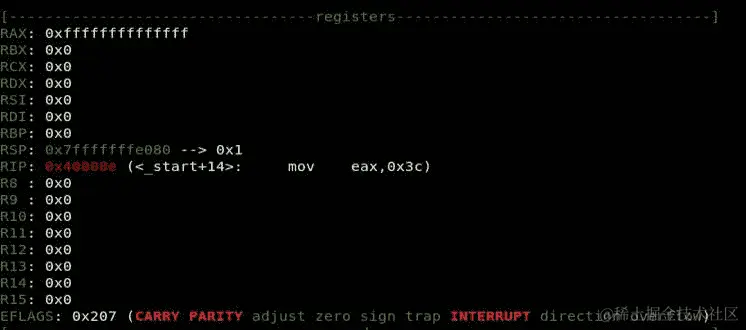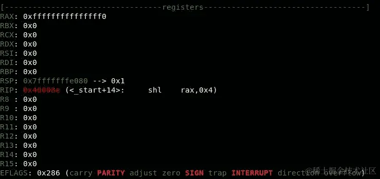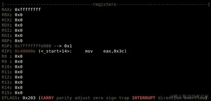 我们将0x0fffffffffffffff移动到rax寄存器中,现在它看起来是这样的: