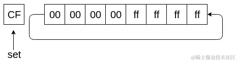 此外,由于最低有效位为 1,所以 CF 被设置: