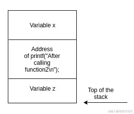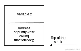 main函数执行printf("After calling function1\n"),并将printf("After calling function2")的地址推入堆栈,如下所示: