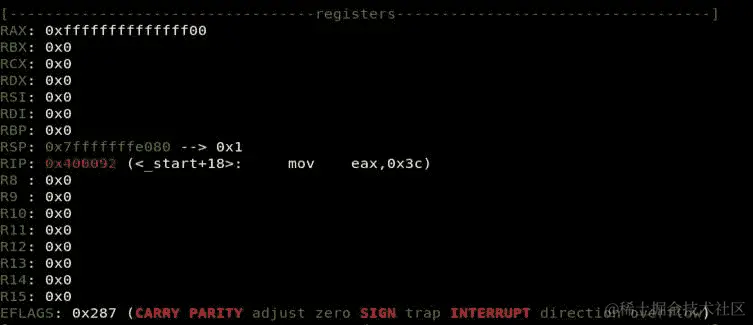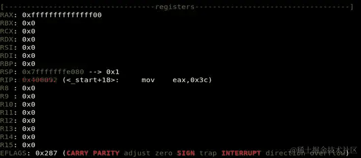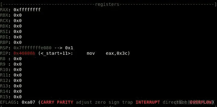 首先,我们将0xffffffff00000000移动到rax寄存器中: