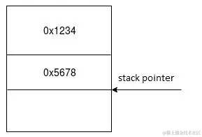 堆栈使用后进先出(LIFO)来存储其中的元素,并且有一个堆栈指针(稍后我们会讨论它),它指向堆栈的顶部,并使用push将元素存储在堆栈顶部,使用pop从堆栈顶部提取元素。