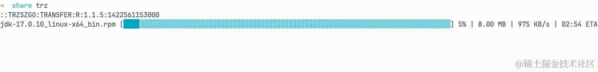 在使用了一段时间后,我又发现了一些不爽的点,比如:上传、下载大文件时,没法看进度,而且感觉速度也比较慢,另外不支持 tmux 终端等。经过一番查找,发现了trzsz命令。