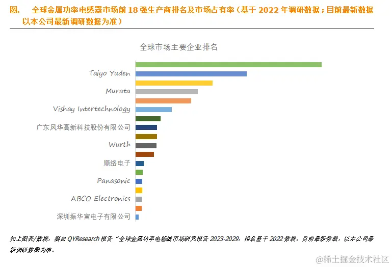 根据QYResearch头部企业研究中心调研,全球范围内金属功率电感器生产商主要包括TDK、Taiyo Yuden、Murata、Samsung Electro-Mechanics、Sumida、Vishay Intertechnology、Chilisin、Bourns、Wurth、KYOCERA AVX等。2022年,全球前十强厂商占有大约79.0%的市场份额。