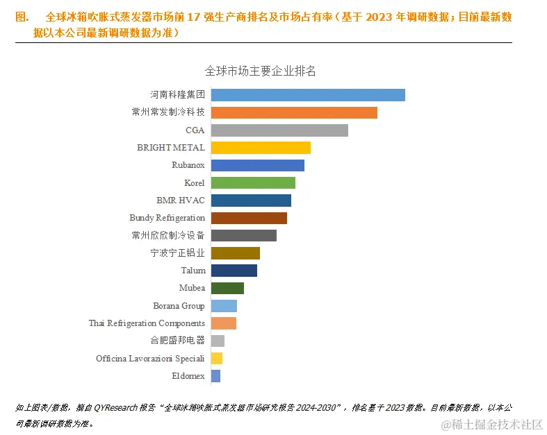 根据QYResearch头部企业研究中心调研,全球范围内冰箱吹胀式蒸发器生产商主要包括河南科隆集团、常州常发制冷科技、CGA、BRIGHT METAL、Rubanox、Korel、BMR HVAC、Bundy Refrigeration、常州欣欣制冷设备、宁波宁正铝业等。2022年,全球前十强厂商占有大约62.0%的市场份额。