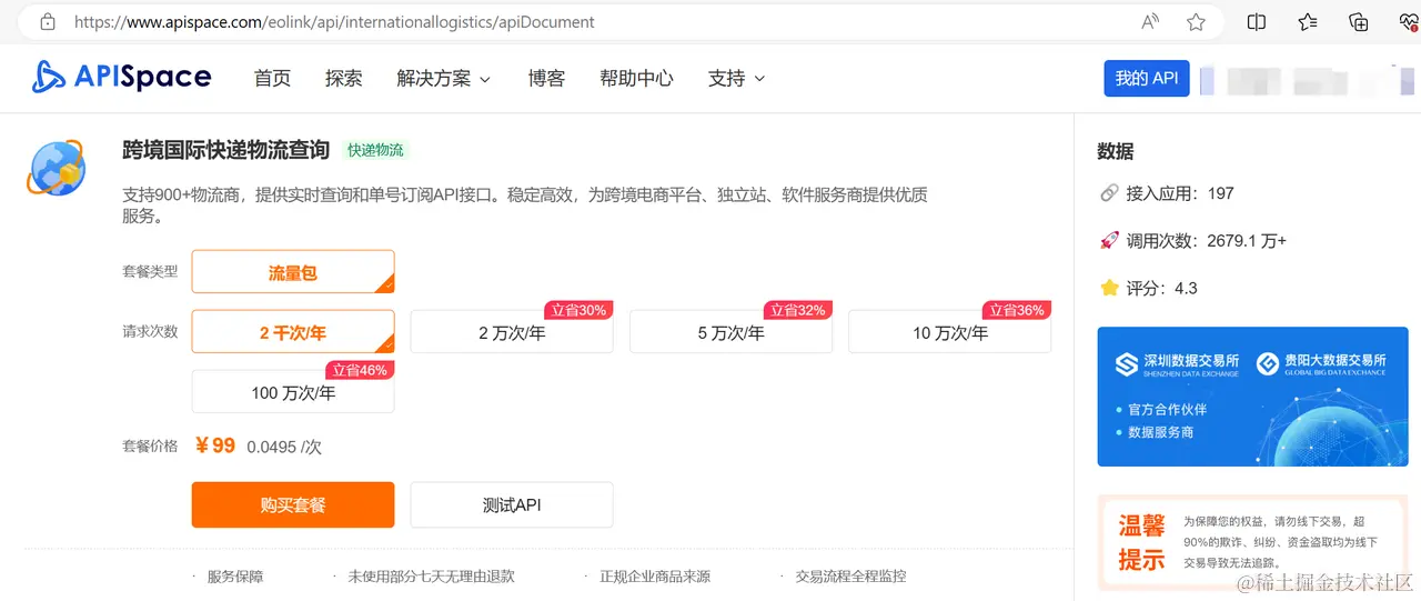 APISpace 的 跨境国际快递物流API,支持900+物流商,提供实时查询和单号订阅API接口。稳定高效,为跨境电商平台、独立站、软件服务商提供优质服务。可支持在线物流信息查询,也可将API集成到自己的系统当中,将物流信息可视化展示出来。