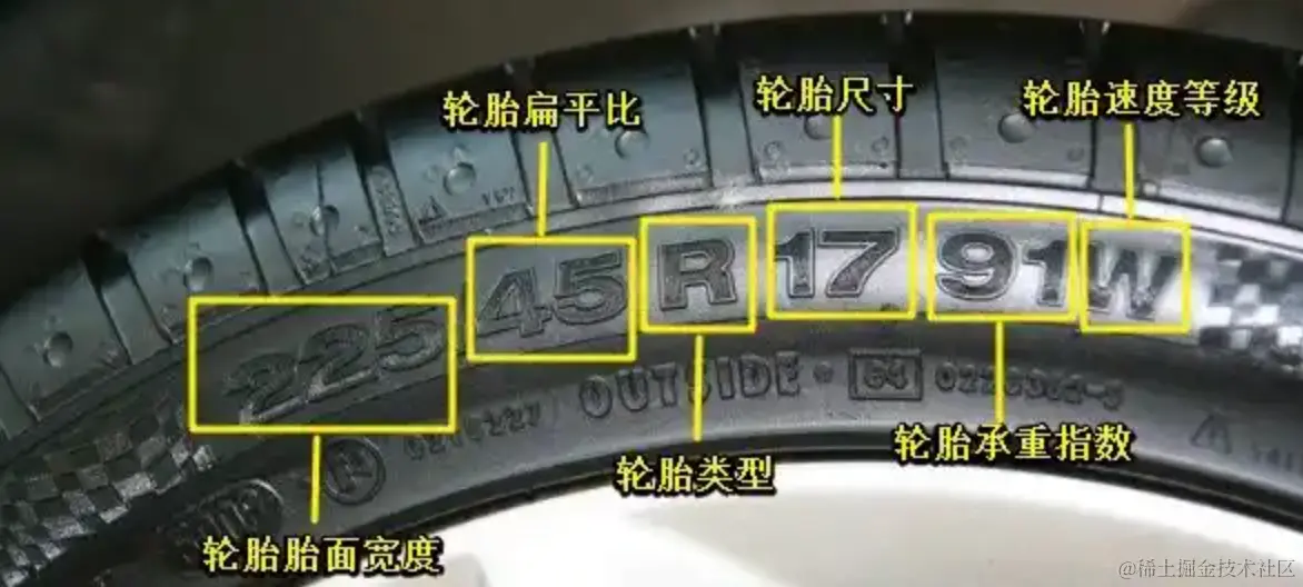 例如一个汽车轮胎上会有一些字符,225/45R17 91W 2317。2319 表示轮胎的日期为 2019 年第 23 周。