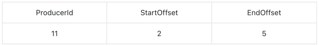 代表 offset 在 [2,5] 之间且由 id 为 11 的 Producer 发送的消息都已回滚。