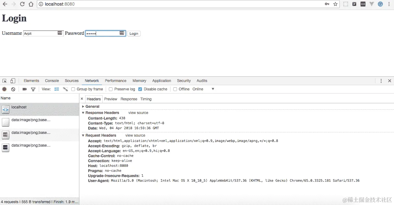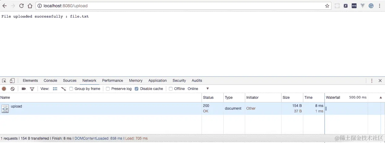 点击“提交”按钮后,客户端将对请求的主体进行编码,并对表单操作进行POST调用,这在我们的情况下是/upload。