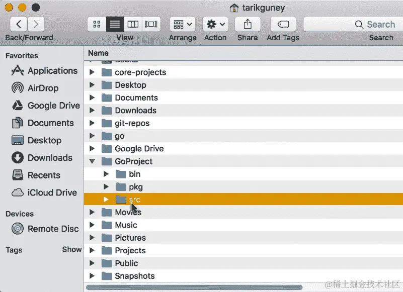 安装程序基本上是一个逐步向导;您只需运行它并不断点击“继续”,直到安装完成。安装完成后,您可能还需要做一件事,那就是设置您的环境变量。此外,您还需要设置您的工作区。您将有三个文件夹,bin、pkg和src,如下截图所示: