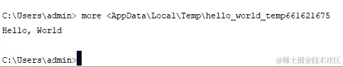 运行代码时,你会看到没有错误发生,我们的hello_world文件存在。如果你打开文件,你会看到Hello, World已经被写入了:
