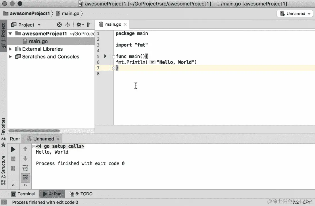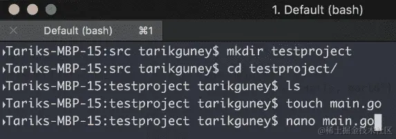 在我结束本章之前,让我快速向您展示一个仅使用终端的示例。我将使用touch命令创建main.go文件并添加以下代码: