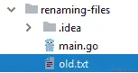 在这一部分,我们将看到如何在 Go 中重命名文件。首先,我们将创建一个新文件并命名为old.txt,文件夹结构将如下屏幕截图所示: