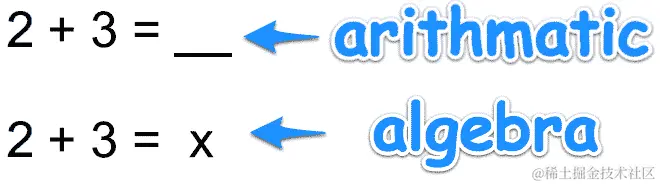 代数是数学的一个分支,与算术非常相似。它使用数学的四个主要运算:加法、减法、乘法和除法(+,-,/,)。代数还引入了一个新元素:未知数。在数学中,未知数在等式的右侧。记得数学问题,比如2 + 3*。在我们对操作数(2 和 3)进行数学运算之前,答案是未知的。在代数中,我们使用符号代替未知的占位符。一个代数方程将是2 + 3 = x。这是一个代数方程,说明等号两边是等价的。操作数 2 和 3 是已知的,而x是未知的。