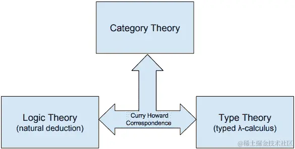 以下图表暗示了范畴论、函数式编程和逻辑是等价的:
