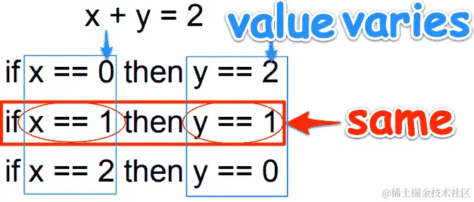 规则 3: 当同一个变量符号在同一个方程中多次使用时,它代表相同的值。