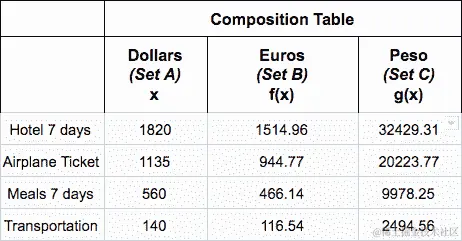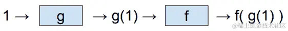 我们将1输入到g,并将其表示为g(1)。我们将g(1)输入到f,得到f(g(1))。