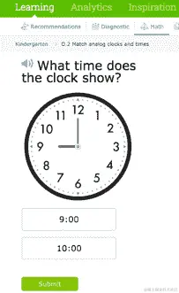 在这里查看 K-12 教育中使用的学习材料:www.ixl.com/math/kindergarten/match-analog-clocks-and-times。