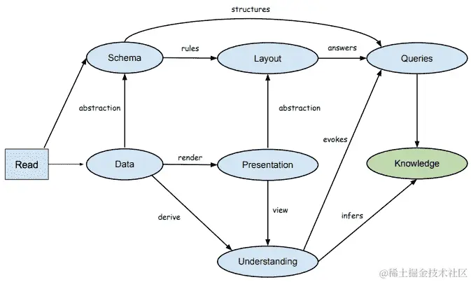 这里显示的类别定义了一个良好的可视化过程;如果箭头、对象和数据准确无误,那么图表就会通行无阻。我们可以确信我们获得的知识是可靠的。