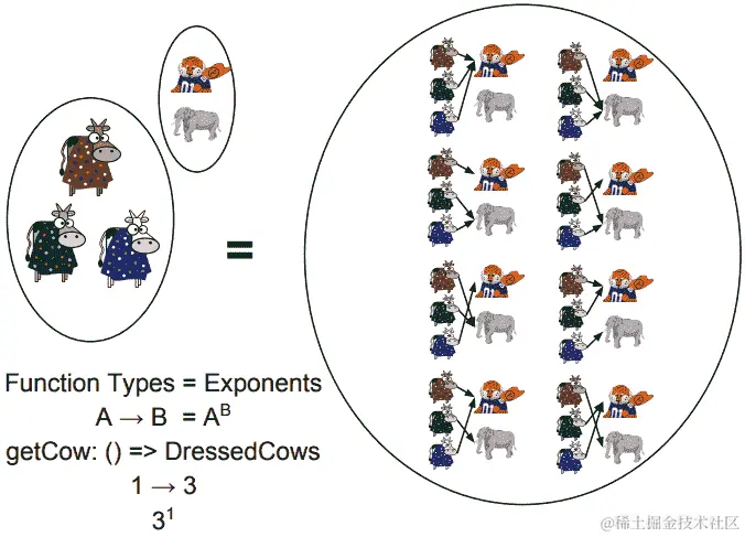 如果我们有一个 getCow 方法,它将返回 DressedCows,如果我们有 3 种类型的 DressedCows,那么如果我们调用 getCow,它可以返回 3¹个可能的 DressedCows。