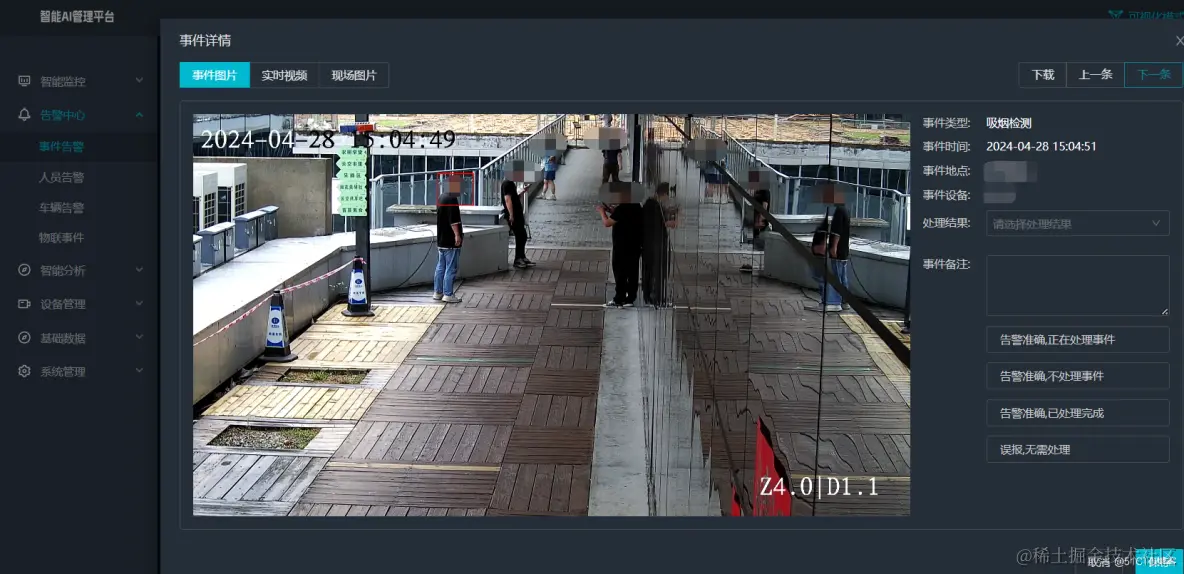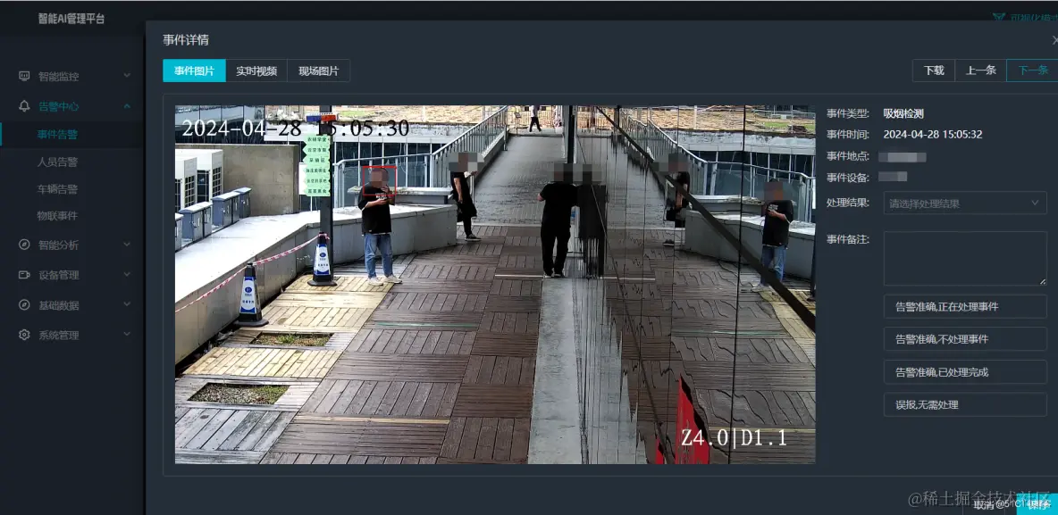 首先,智能边缘分析一体机通过高清摄像头捕捉公共场所的视频流。这些视频流随后被传输到一体机的处理单元,进行预处理和特征提取。预处理阶段主要消除视频中的噪声,提高图像质量,为后续的吸烟检测提供高质量的图像数据。
