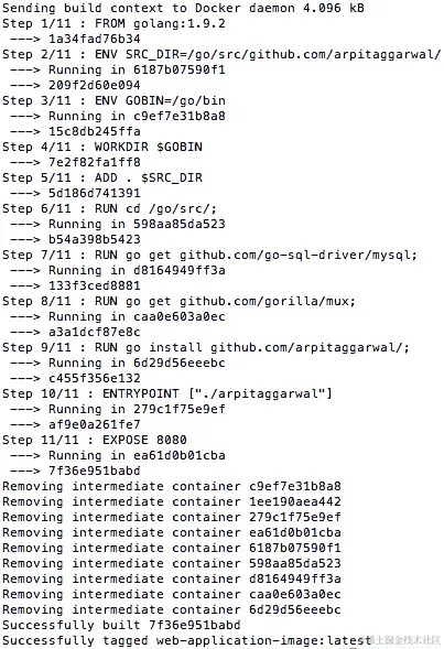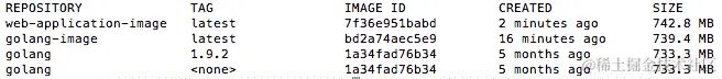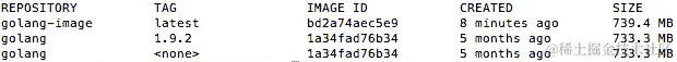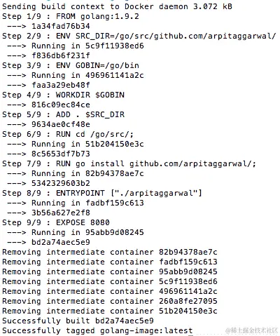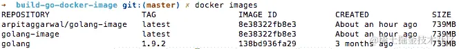-t标志执行docker build命令构建一个名为golang-image的 Docker 镜像,如下所示: