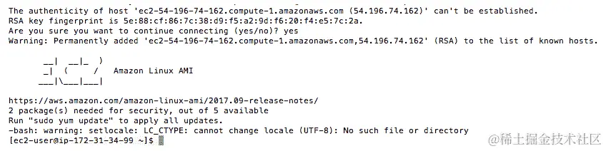 - 使用私钥文件和公共 DNS 名称登录 EC2 实例,如下所示: