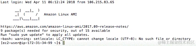 一旦命令成功执行,我们将登录到 EC2 实例,并且输出将如下所示: