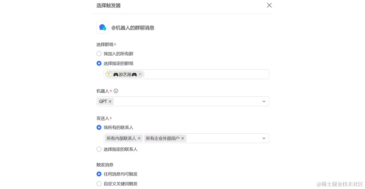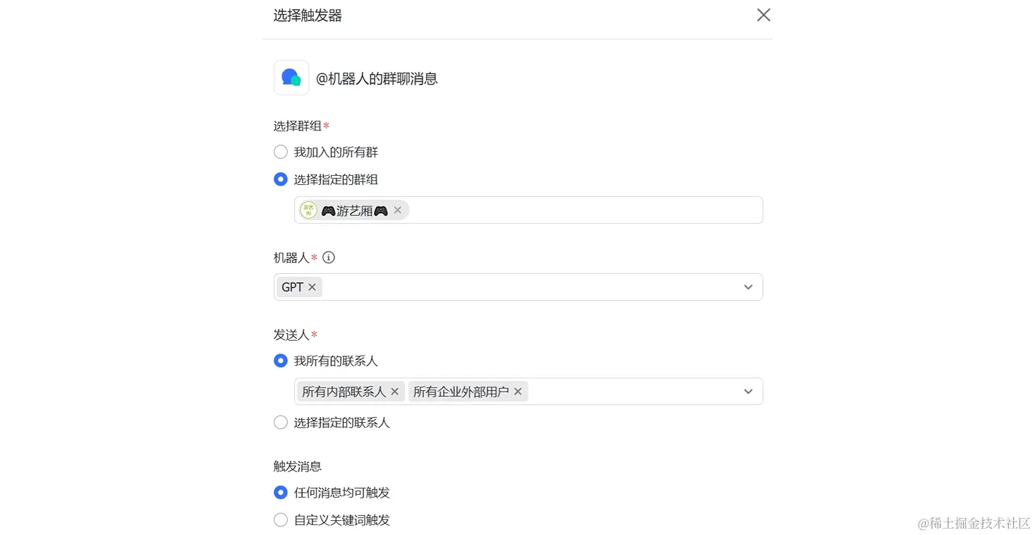 本篇重点在于介绍如何把企业内部应用改造成飞书外部群的自定义机器人。