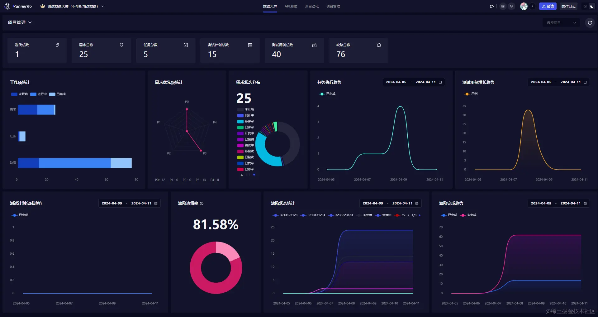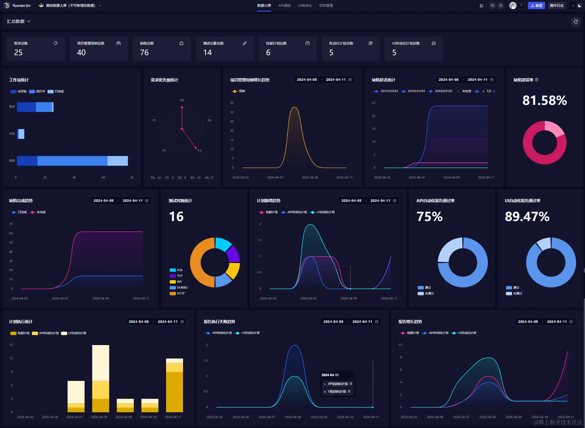 数据大屏为项目经理、测试工程师以及开发人员提供全面、准确的测试数据支持。
