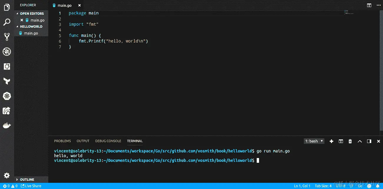 如果您愿意,也可以从源代码构建该语言。安装结束时,您应该拥有所有 Go 库、Go 命令行以及一个简单的 hello world 项目,以确保一切都安装正确。