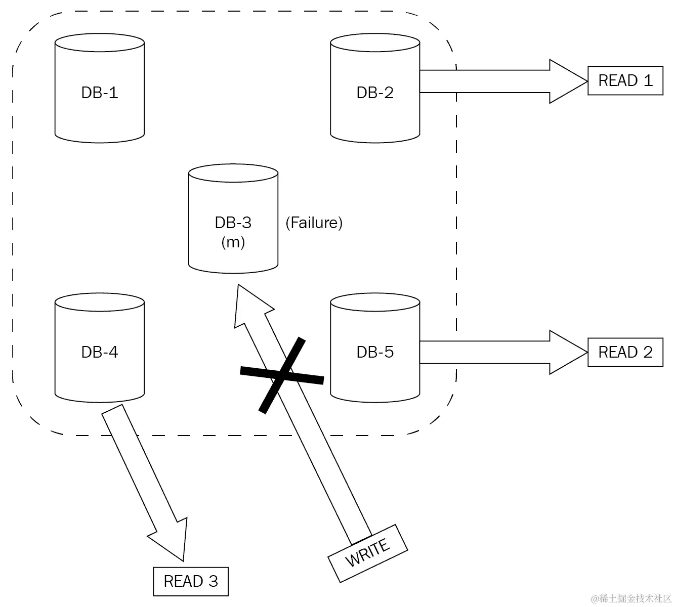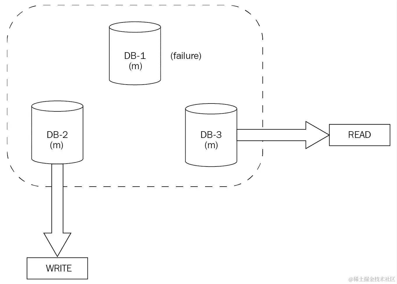 - 主数据库故障仍允许从副本数据库读取,但不允许写入: