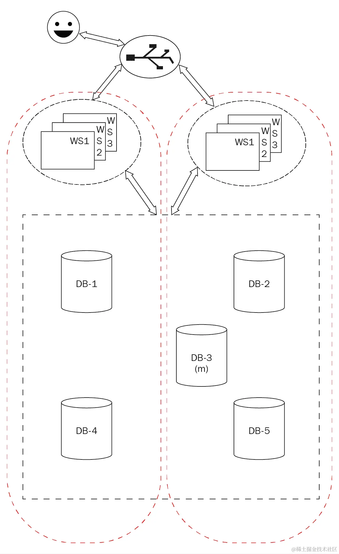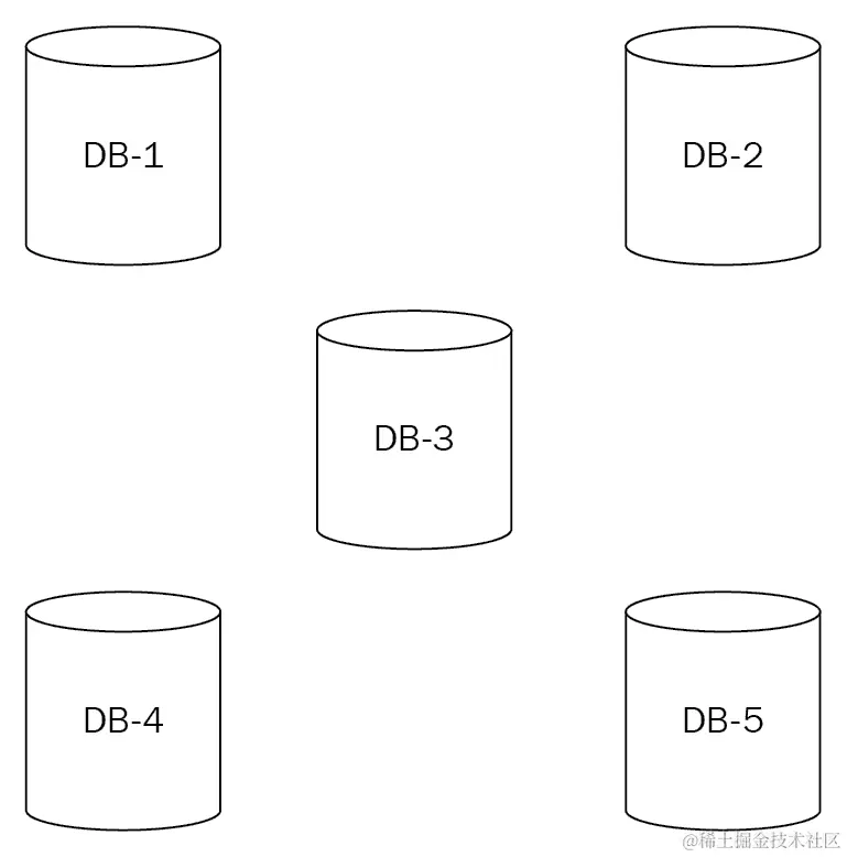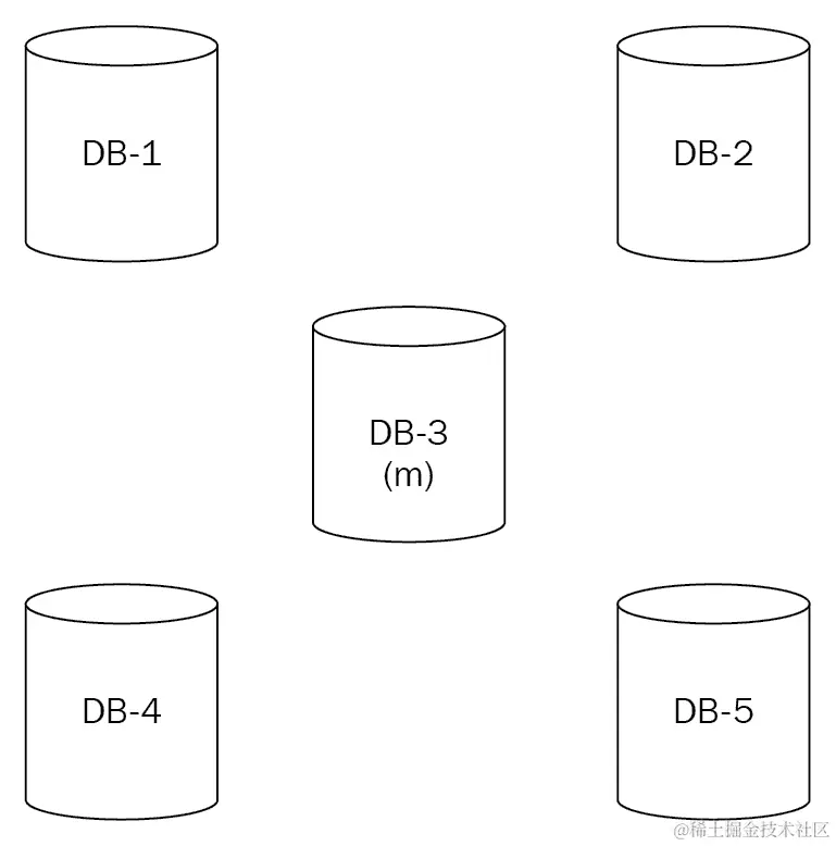 我们有两个主-主数据库DB-1和DB-2,并且两者都具有数据库系统的最新状态:
