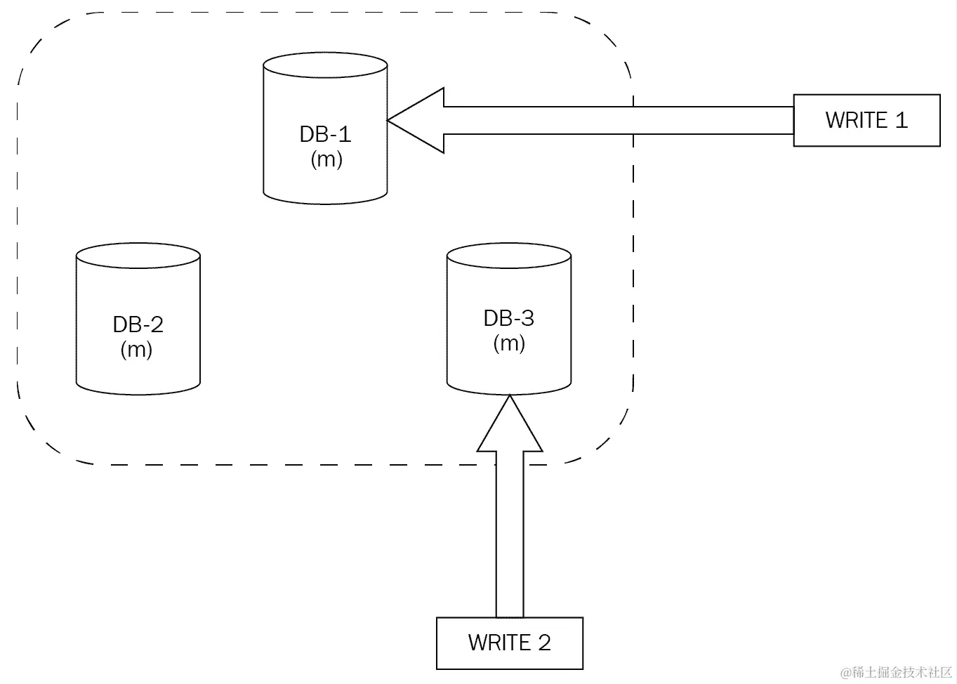 我们有两个同时进行的写操作,因此我们将“Bob”发送到DB-1,将“Alice”发送到DB-2*.*