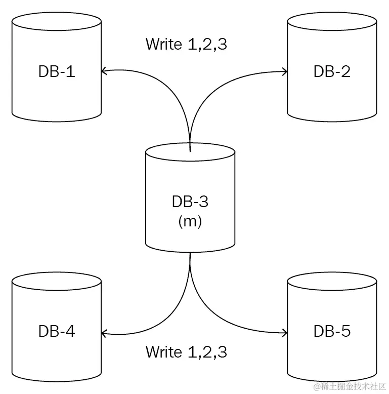 主-主复制尝试通过使每个数据库成为主数据库来解决这些问题。可以解释如下: