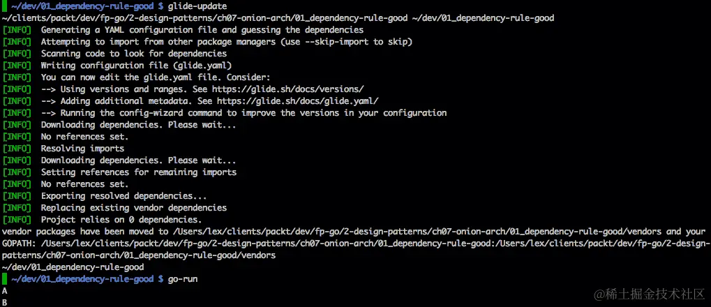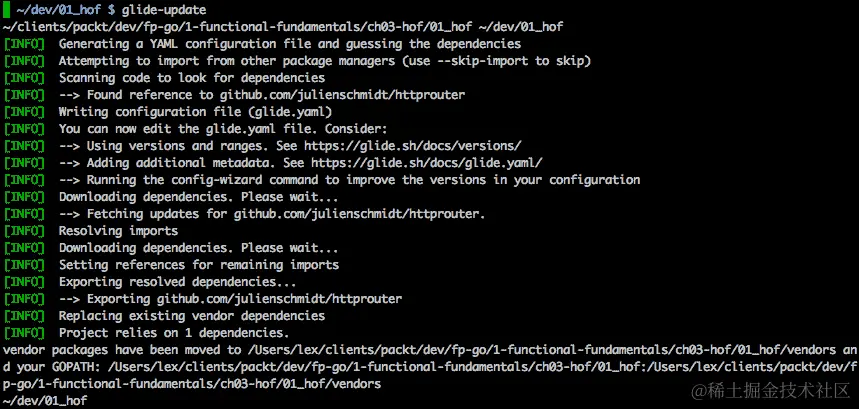 接下来,我运行了glide-update,告诉 Glide 将依赖项放在 vendors 目录中: