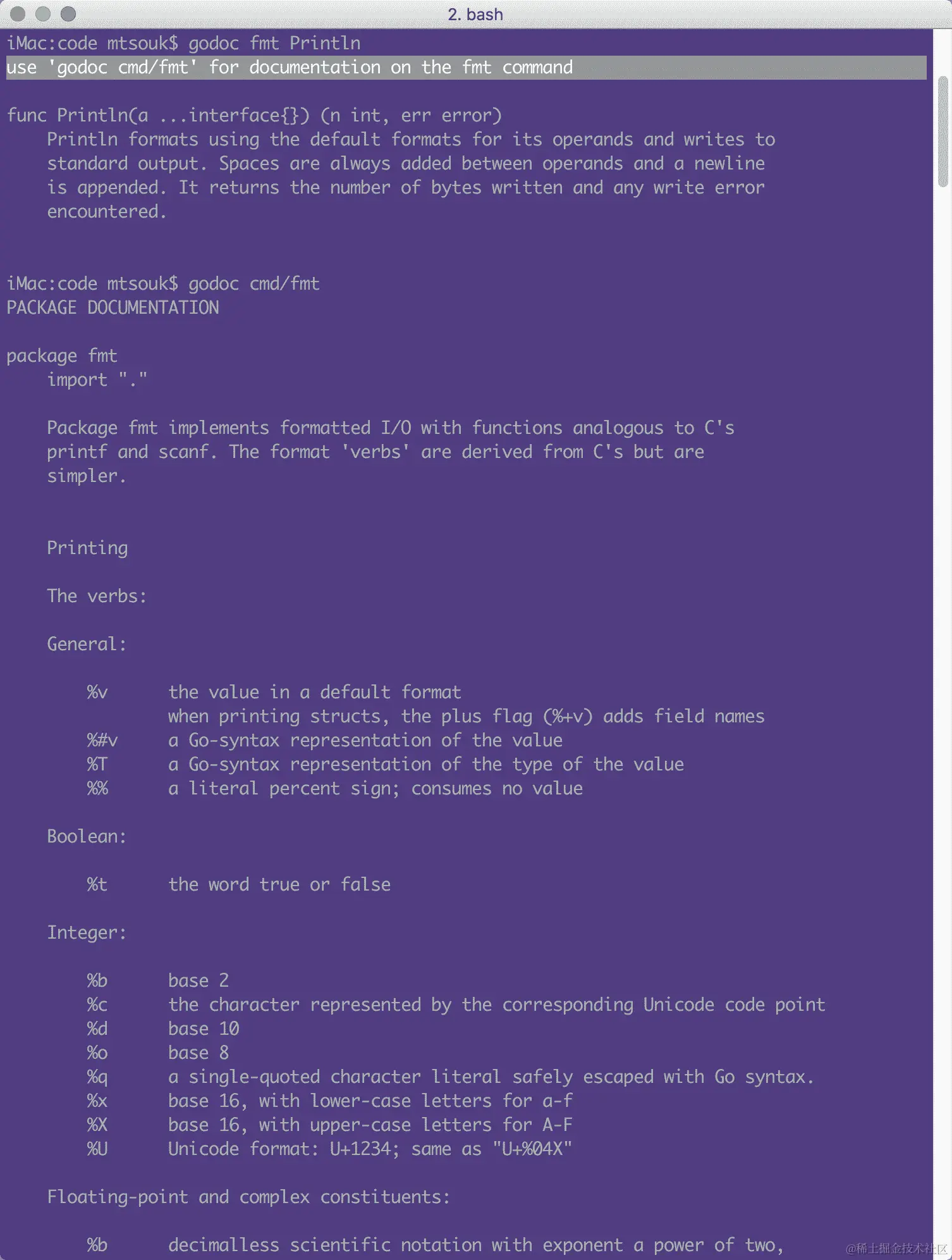 再次,输出的以下部分验证了在 Unix 机器上,最终一切都被转换成 C 系统调用和函数,因为这是与 Unix 内核通信的唯一方式。您可以显示对write(2)系统调用的所有调用如下: