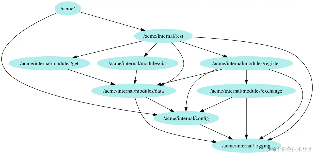 正如你所看到的,它更加平坦;REST包不依赖于模块层(list、get和register包)。