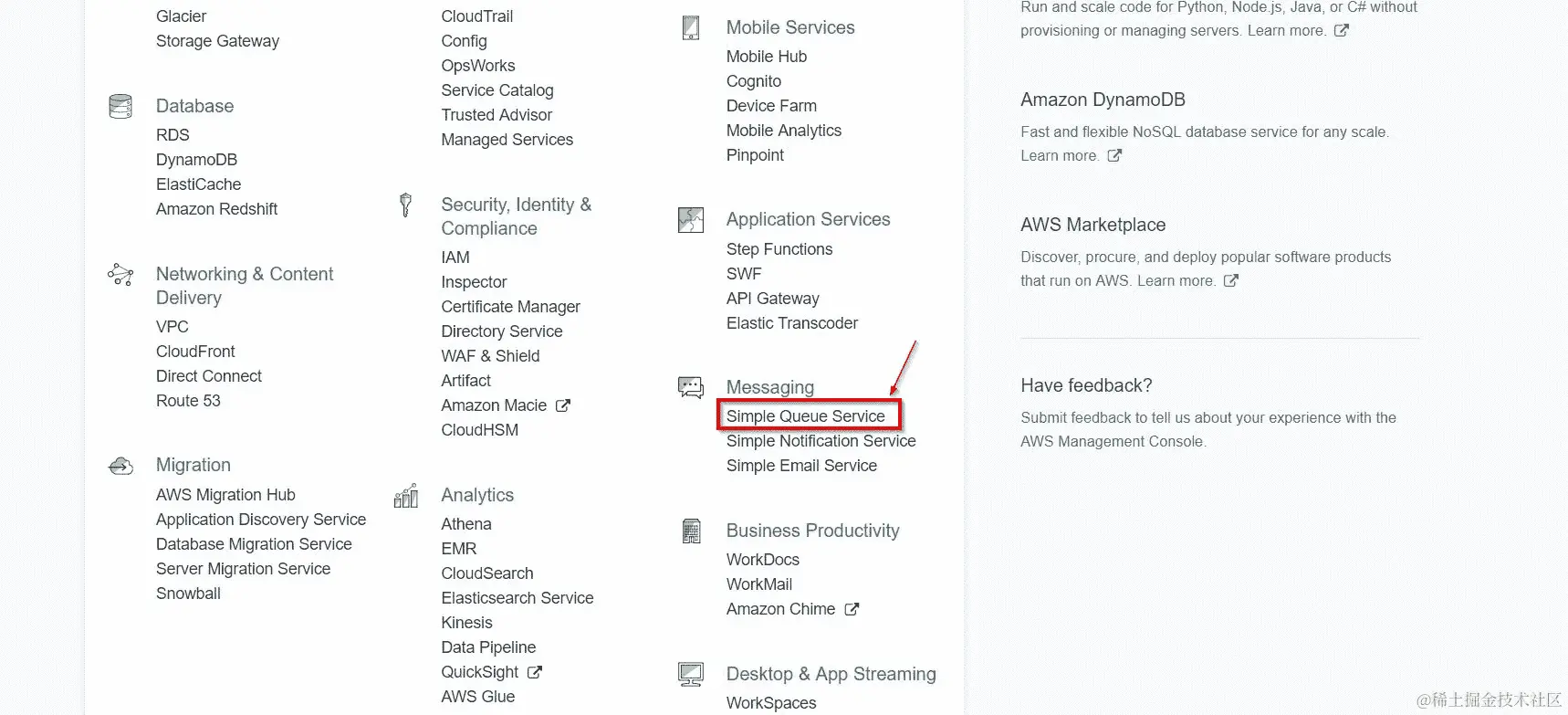 简单队列服务(SQS):SQS 是 AWS 提供的托管消息队列服务。简而言之,我们可以将消息队列描述为一种软件,可以可靠地接收消息、排队并在其他应用程序之间传递它们。SQS 是一种可扩展、可靠且分布式的托管消息队列。