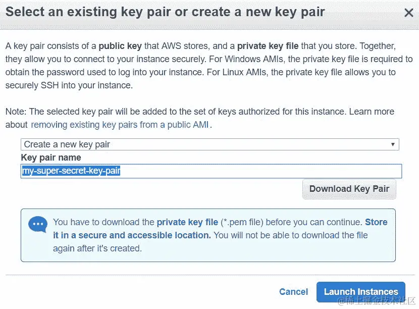 完成权限设置后,我们可以审查我们的选择并继续创建新用户。一旦创建了新用户,我们将有一个选项来下载用户的访问密钥作为 CSV 文件。我们必须这样做才能在以后的应用程序中利用这些访问密钥。访问密钥由访问密钥 ID 和秘密访问密钥值组成。