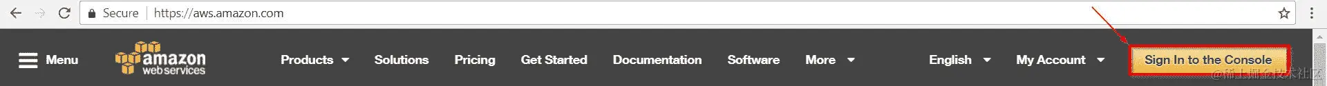 AWS 控制台是一个网页门户,为我们提供访问 AWS 提供的多种服务和功能。要访问该门户,您首先需要导航到aws.amazon.com,然后选择“登录到控制台”选项,如下所示: