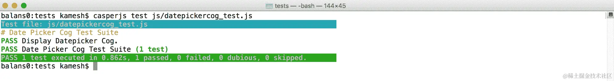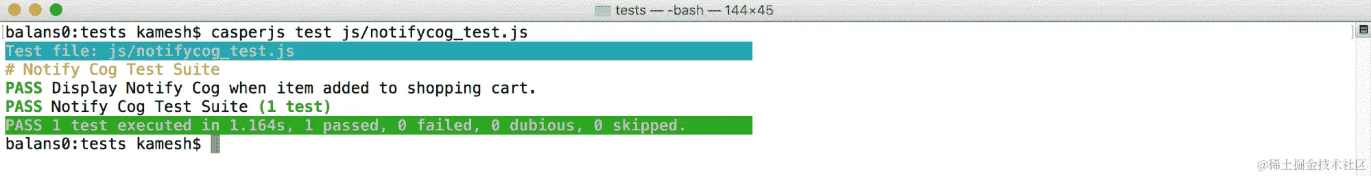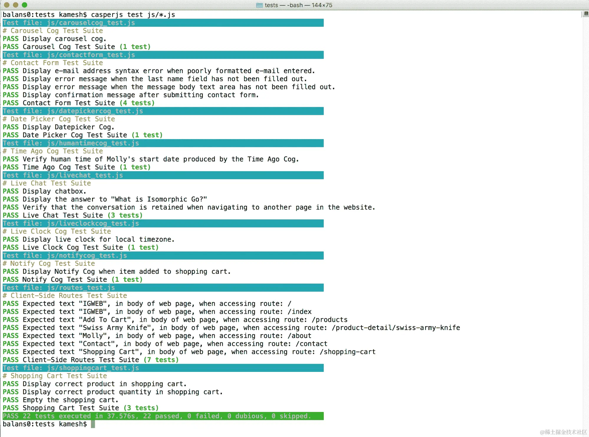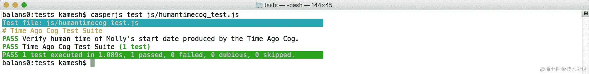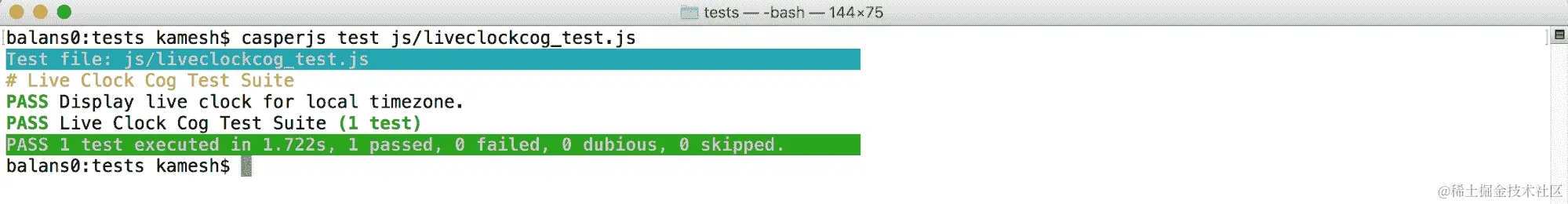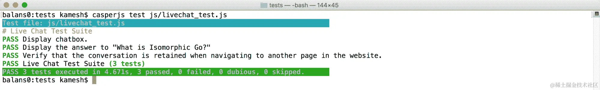 要运行套件中的所有测试,我们只需在tests文件夹中运行go test命令: