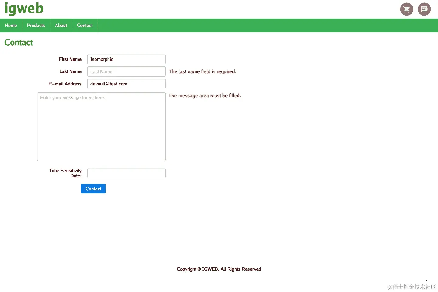 我们将要实现的下一个测试将测试联系表单的服务器端表单验证功能。我们将测试两种类型的验证:
