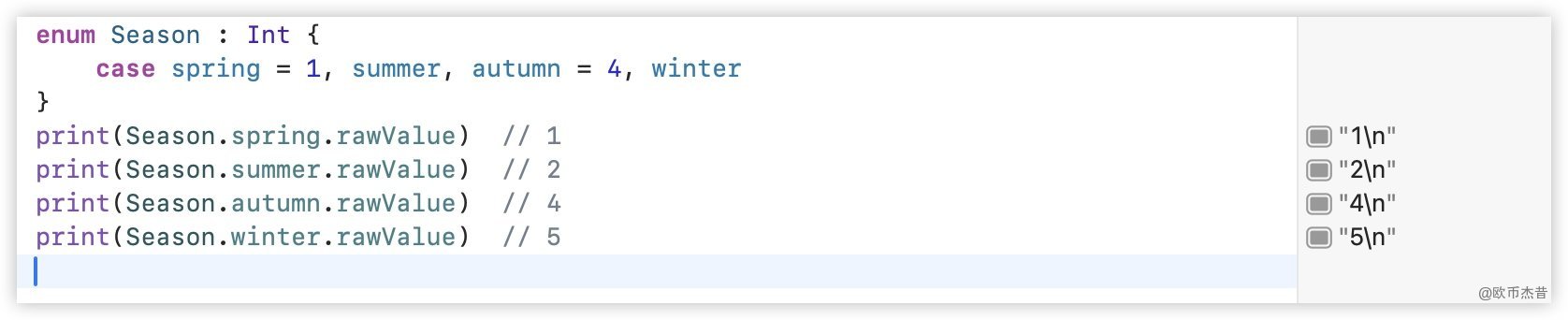 print(Season.autumn.rawValue) // 4
