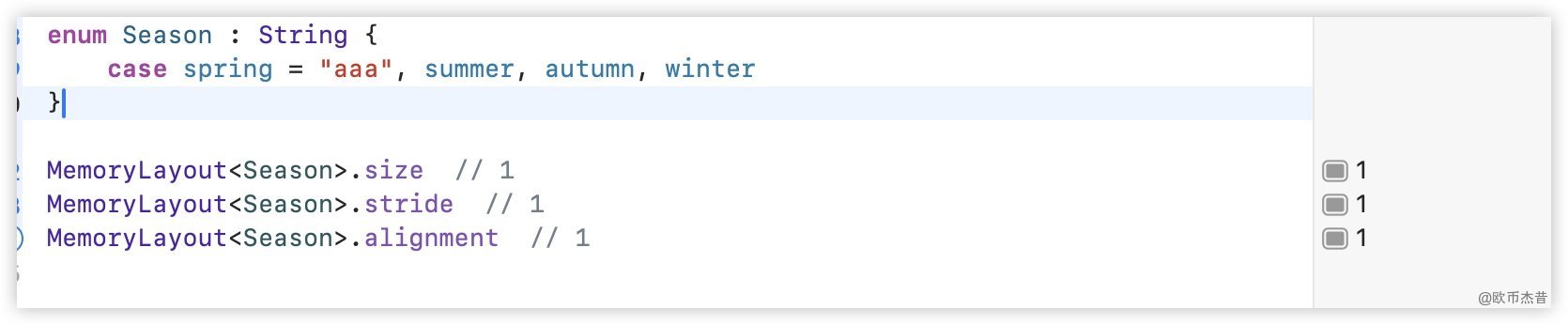 MemoryLayout<Season>.size // 1