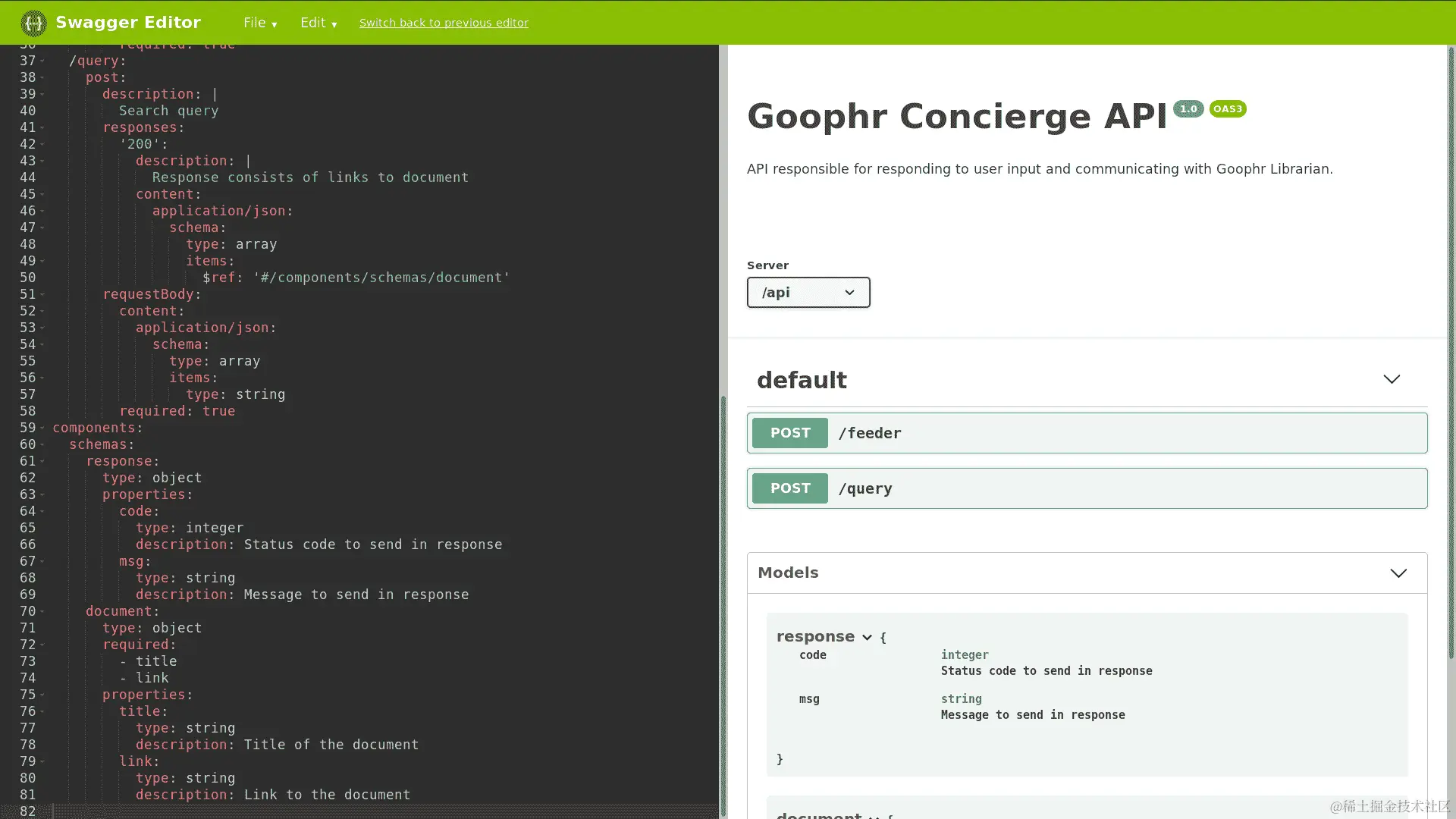/api/feeder端点的有效负载是否返回预期的文档内容 -