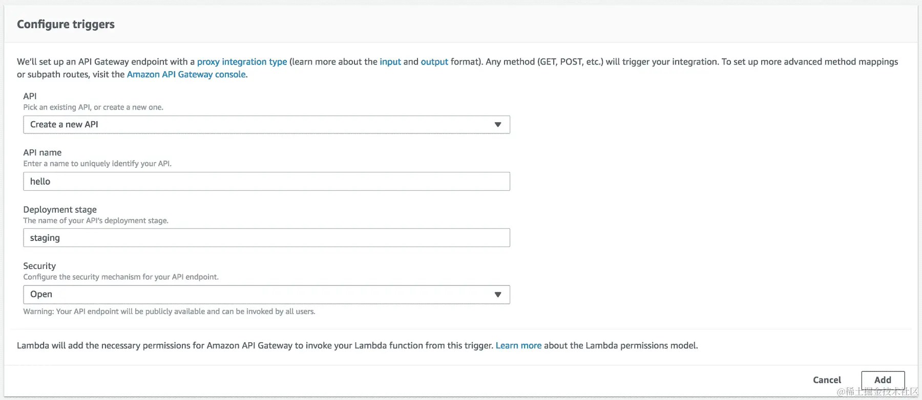 最后,我们需要在 API Gateway 的