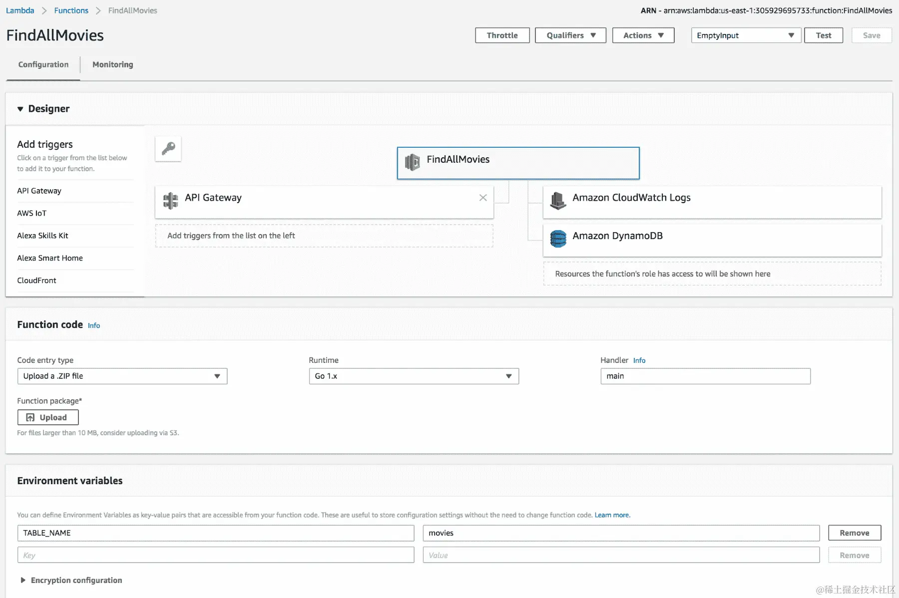 - 创建一个新的环境变量,DynamoDB 表名如下: