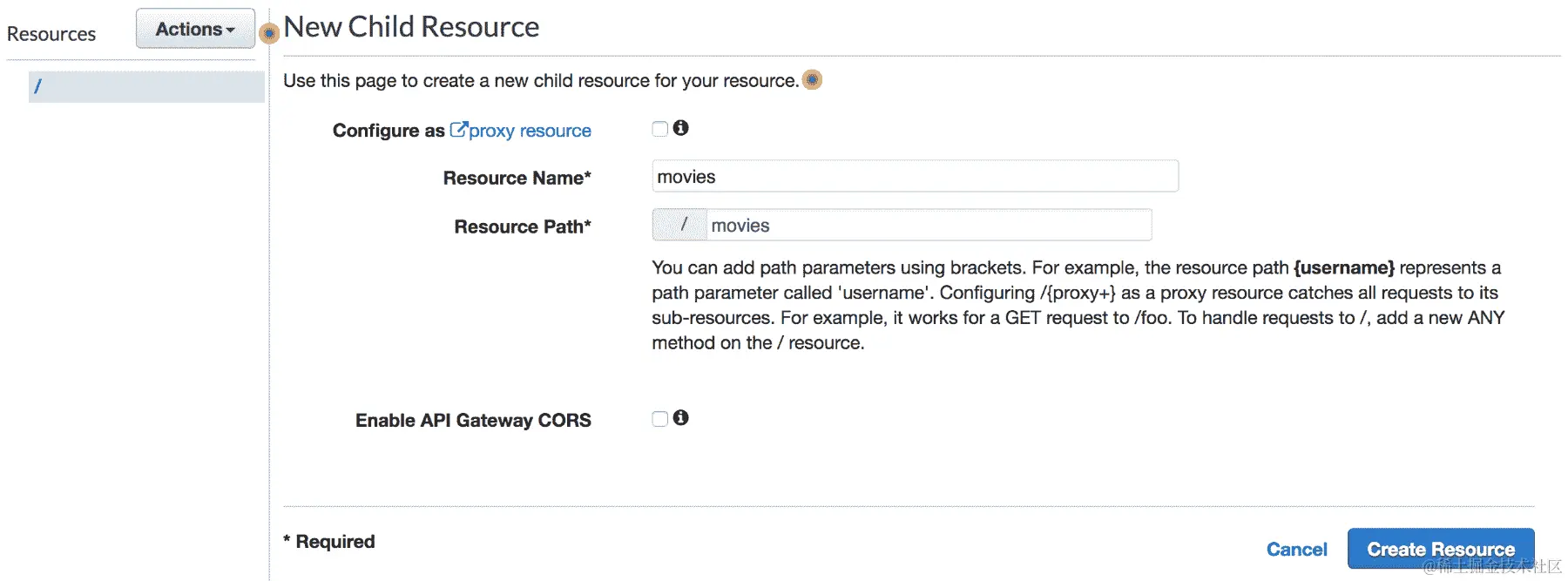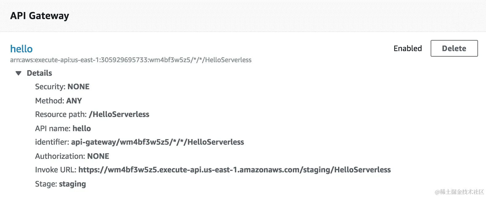 - 但是,我们需要提供 API ID 以及资源 ID。这些 ID 可以在 API Gateway 控制台中轻松找到,如下所示: